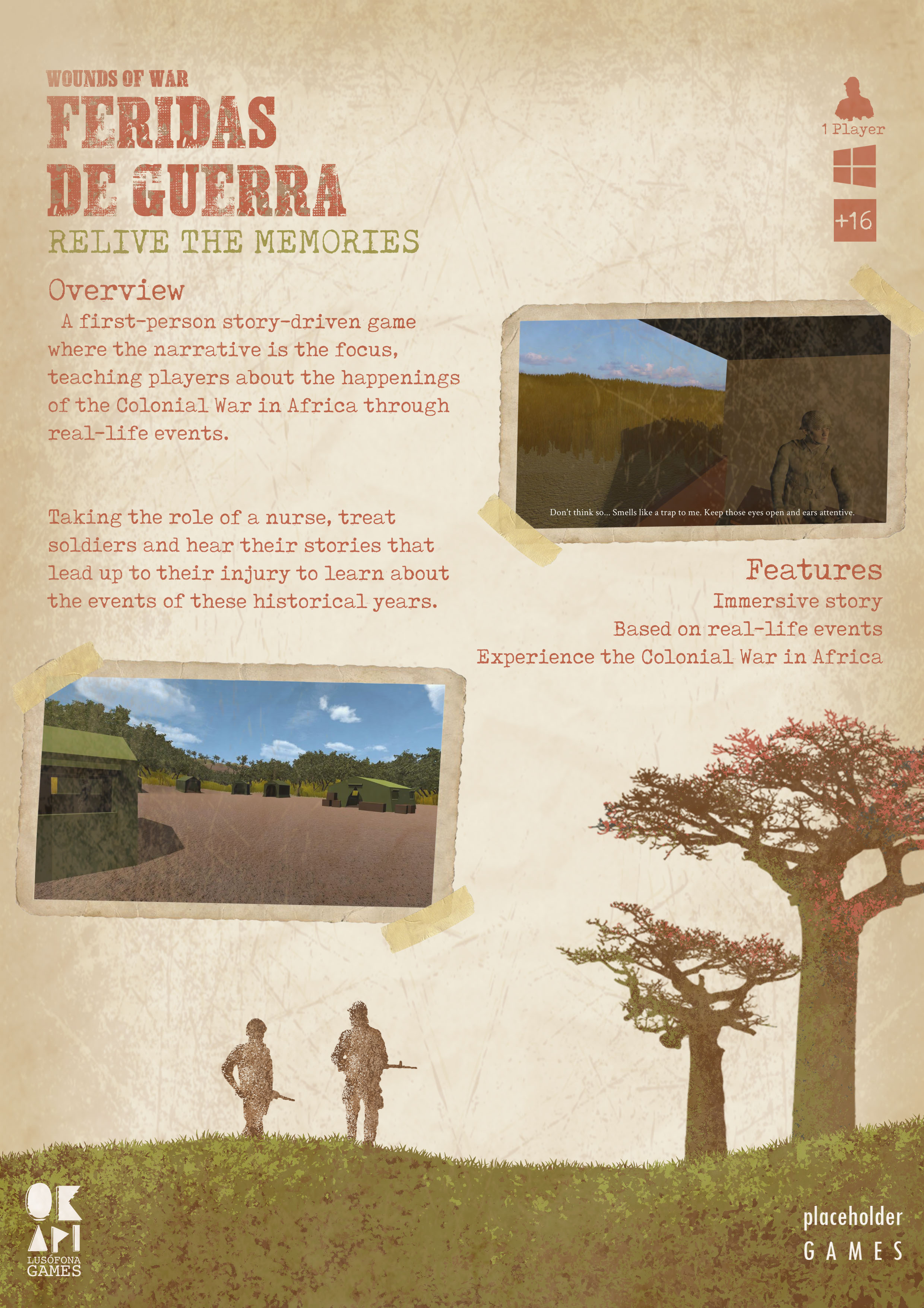 First-Person story-driven game about the Colonial War in Africa based on real-life events. Take the role of a nurse, treat soldiers and experience their stories. https://placeholdergames.itch.io/fdg-wow